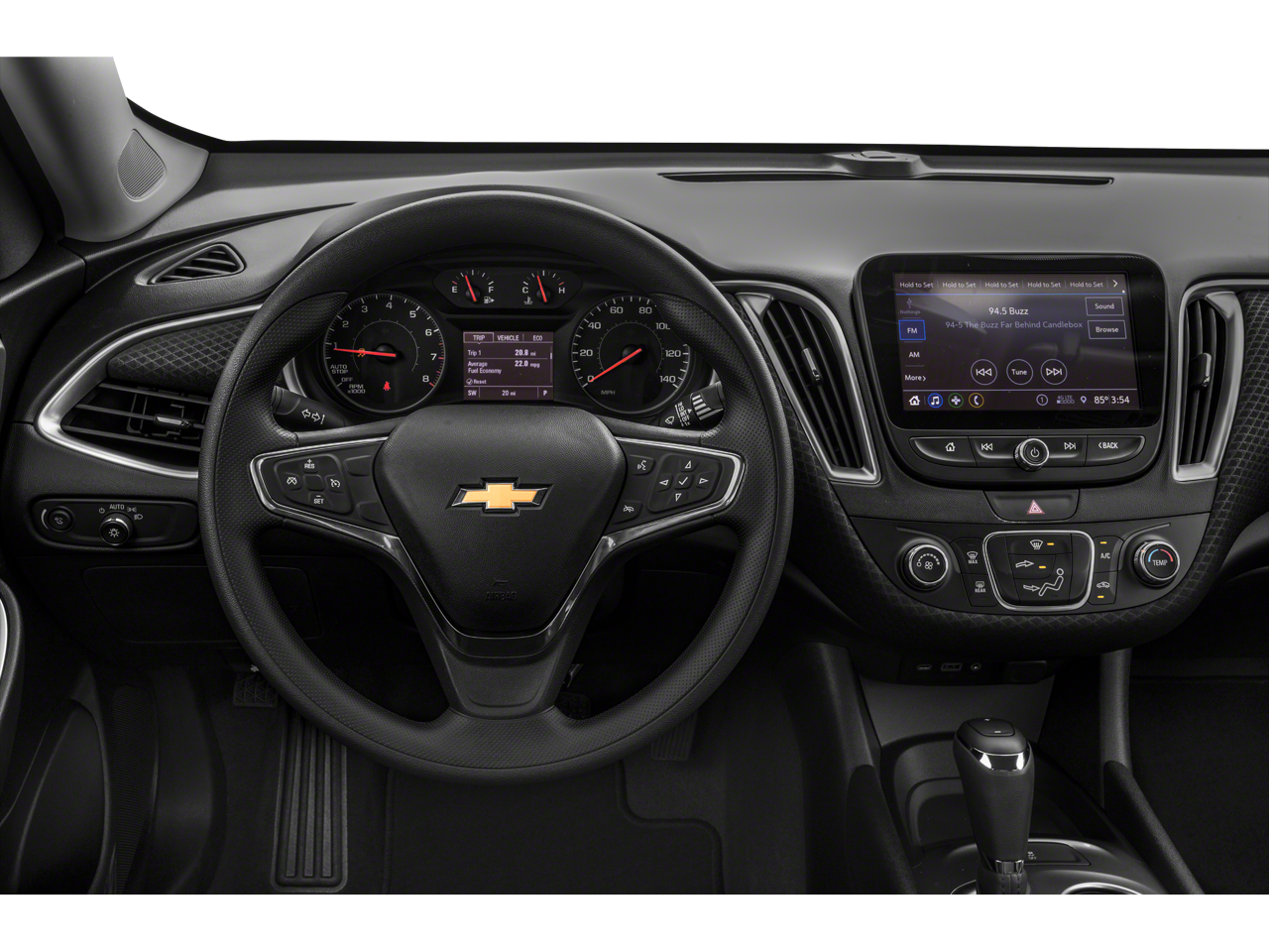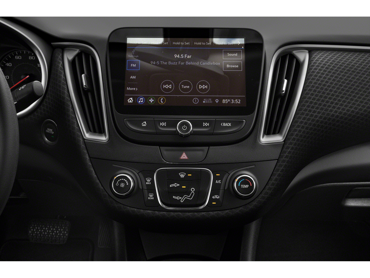 - Audio system, Chevrolet Infotainment 3 system, 8" diagonal color touchscreen, AM/FM stereo. Additional features for compatible phones include: Bluetooth® audio streaming for 2 active devices, voice command pass-through to phone, Apple CarPlay and Android Auto capable. (STD)